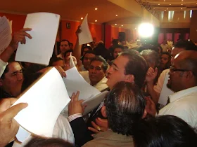 El salón Ghal tuvo un lleno completo y aunque la intención del Dr. Javier fue de saludar a cada uno de los asistentes al evento en sus mesas ya no fue posible hacerlo debido  a que todos querian saludarlo, ante el tumulto tuvo que salir saludando a su paso recibiendo una gran cantidad de oficios con  peticiones diversas.