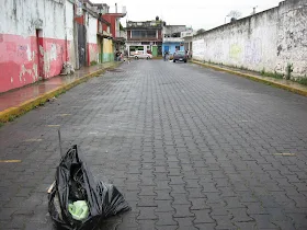 la imàgen muestra como queda de basura al final de un dìa de venta. Esto es los sàbados en la calle circundante al Colòn, pero como estan organizados a tràves de una Uniòn de Comerciantes Establecidos y no Establecidos, dejan barrido para no crear mala imàgen, este grupo lo lidera Araceli Hernàndez Jimènez.